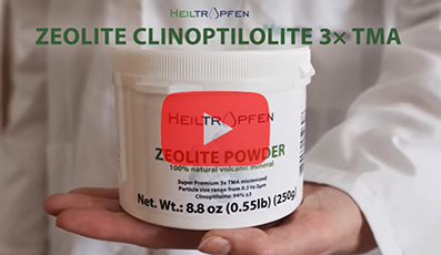 Heiltropfen 的 Zeolite Clinoptilolite 3xTMA 為經特殊處理的 Clinoptilolite 新結構,名稱中的「3xTMA」指三重熱機械活化(3× Thermally Modified Activated),其生物利用率比一般沸石產品更高。此活性沸石經過約 450°C(842°F)的高溫處理,於生產過程中去除結合結晶水與游離水,進一步增強多孔結構與吸附能力,使其負電荷更強,更有效捕捉重金屬、氨、毒素及污染物。