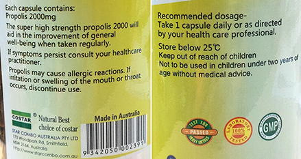 • 每粒膠囊含新鮮蜂膠 2000mg