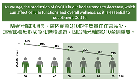 抗氧化支持: 輔酵素Q10是一種強大的抗氧化劑,有助於保護細胞免受自由基造成的傷害。