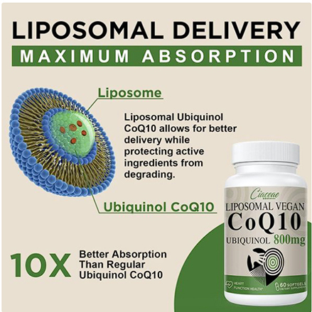 而Liposomal脂質體的泛醇有更高的吸收率:脂質體輔酵素Q10被包裹在微小的脂質體中,脂質體是脂溶性球體,有助於將輔酵素Q10直接輸送到血液中。 與傳統的Q10補充劑相比,大大提高吸收率。