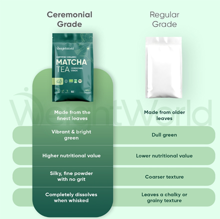 WeightWorld 的抹茶粉是一種 100% 有機混合物,由優質茶道級 (禮儀級)日本抹茶綠茶製成,為您提供最佳的自然體驗。無論您是想加速減肥飲食的效果,還是幫助您放鬆身心、提神,我們的有機抹茶飲料都可以滿足您的所有健康需求。