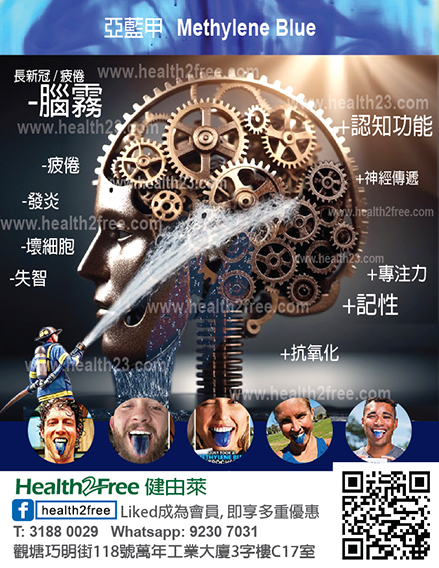 亞甲藍 Methylene Blue (MB) 是一種合成化合物, 歷史悠久, 早期用於不同的科學研究, 及作為染料等...之後被發現具有多種潛在健康益處, eg: 有研究顯示,低劑量 (0.5–4 mg/kg) 可改善短期記憶和注意力, 另外, 發現亞甲藍 Methylene Blue (MB) 尤其與線粒體功能, 能量代謝和神經保護相關, 亦有研究顯示, MB 對壞細胞有潛在幫助.