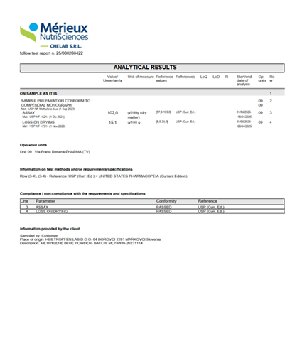 • Heiltropfen 的亞甲藍是通過第三方重金屬污染測試