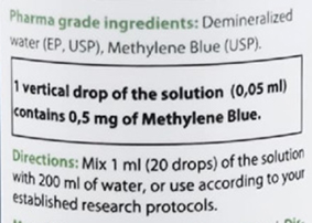 1% 亞甲基藍, 1滴垂直滴液含 0.5mg 亞甲藍 (1ml = 20 滴 = 10mg)